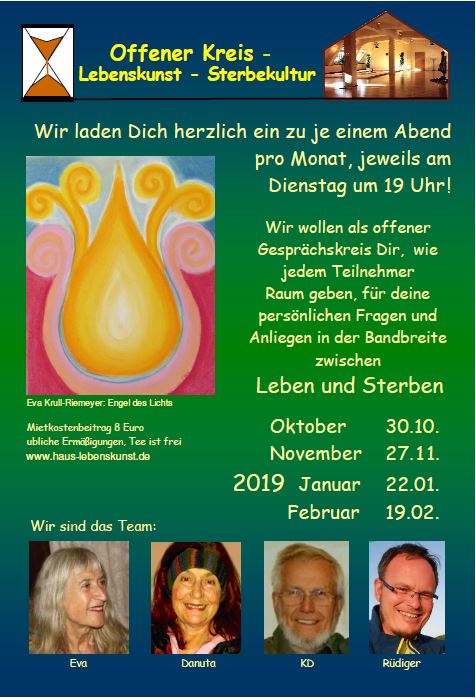 Der Offene Arbeitskreis für eine würdevolle Sterbekultur lädt einmal im Monat dienstags im Haus Lebenskunst ein zu einem Gedankenaustausch.