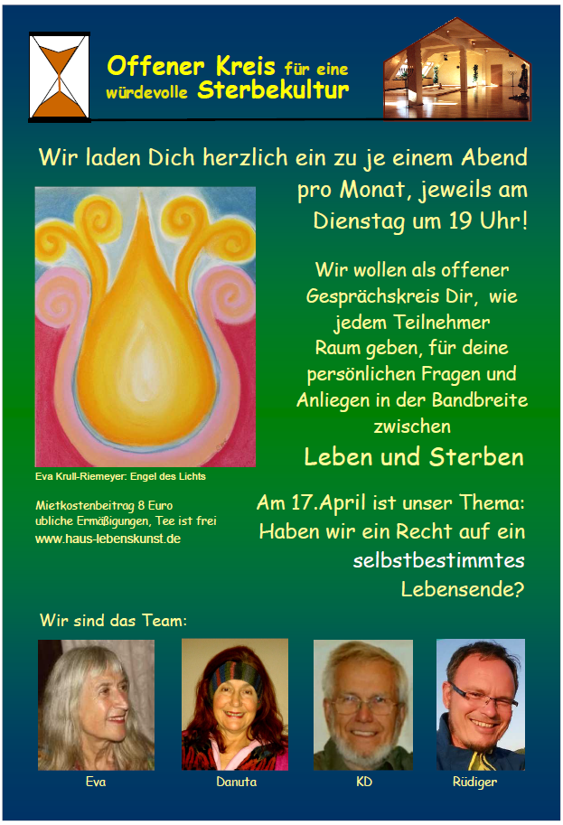 Der Offene Arbeitskreis für eine würdevolle Sterbekultur lädt einmal im Monat dienstags im Haus Lebenskunst ein zu einem Gedankenaustausch.
