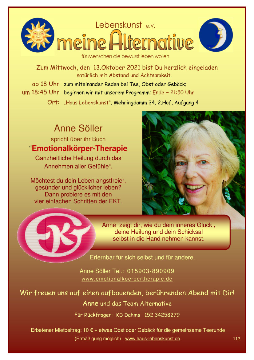 Das Team von "meine Alternative" lädt einmal im Monat mittwochs im Haus Lebenskunst zu einem gestalteten Abend ein, immer mit Gedankenaustausch.