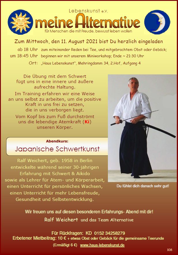 Das Team von "meine Alternative" lädt einmal im Monat mittwochs im Haus Lebenskunst zu einem gestalteten Abend ein, immer mit Gedankenaustausch.
