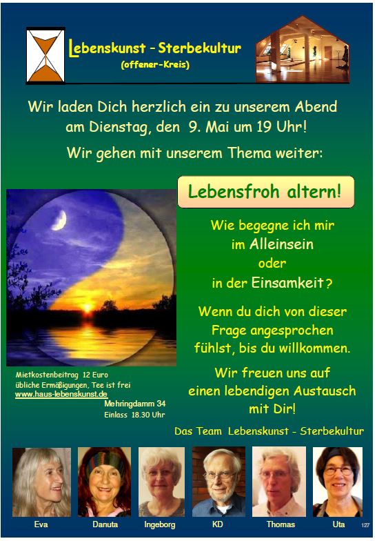 Der Offene Arbeitskreis Lebenskunst - Sterbekultur lädt einmal im Monat dienstags im Haus Lebenskunst ein zu einem Gedankenaustausch.