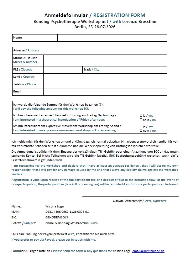 Bonding Psychotherapie Workshop mit / with Lorenzo Brocchini